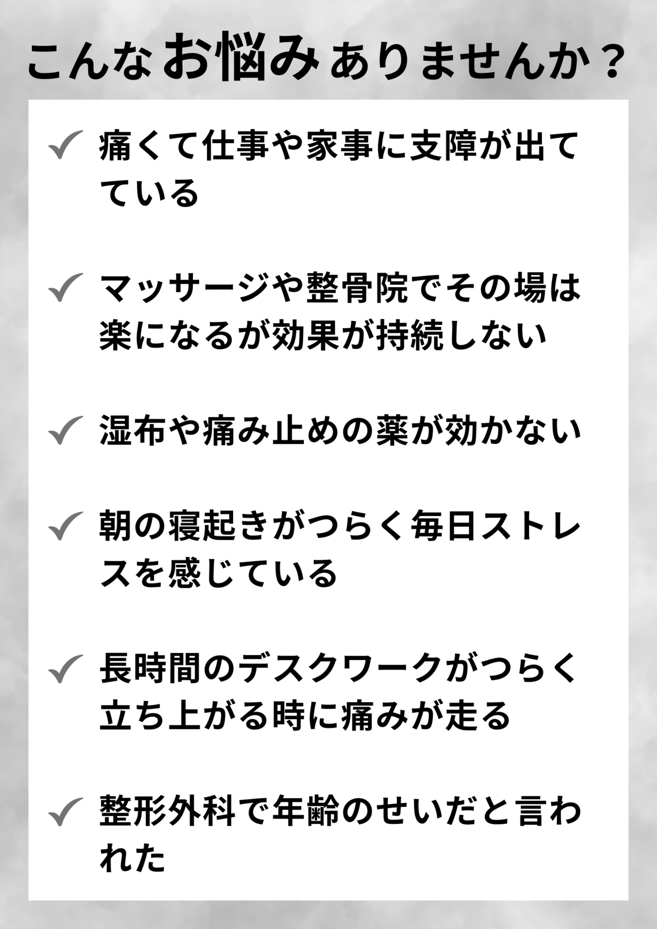 どこへ行っても腰痛やひざの痛みが良くならない・・・もう治らないんじゃないか、と諦めていませんか?