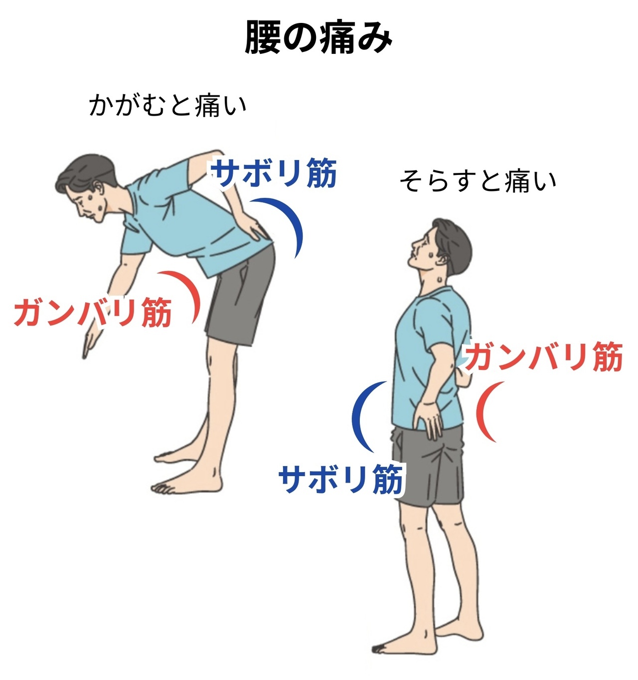 サボリ筋(使えていなくて弱っている筋肉)があり、